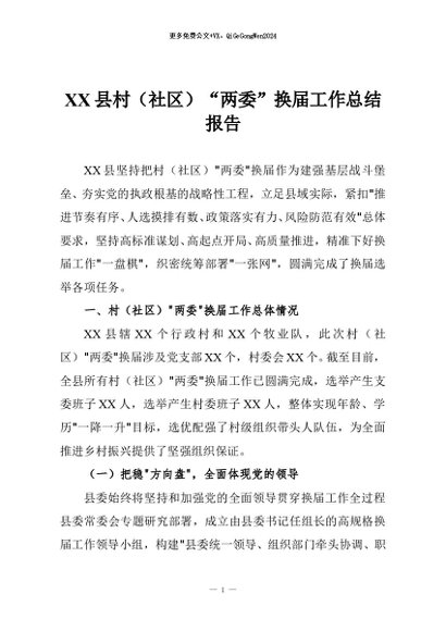 / 【七哥公文】2025年:XX县村(社区)“两委”换届工作总结报告+更多免费公文+VX:QiGeGongWen2024