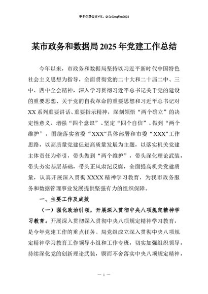 / 【七哥公文】2025年:某市政务和数据局2025年党建工作总结+更多免费公文+VX:QiGeGongWen2024