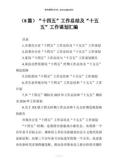 【七哥公文】2025年:(8篇)“十四五”工作总结及“十五五”工作谋划汇编+更多免费公文+VX:QiGeGongWen2024
