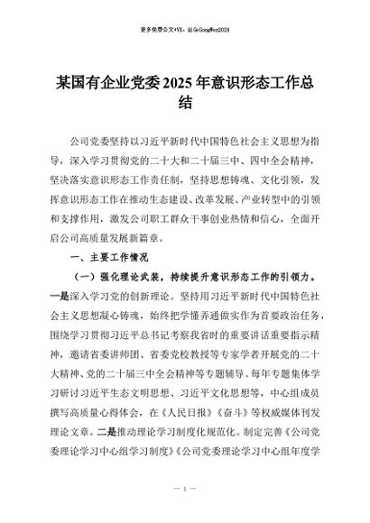 / 【七哥公文】2025年:某国有企业党委2025年意识形态工作总结+更多免费公文+VX:QiGeGongWen2024