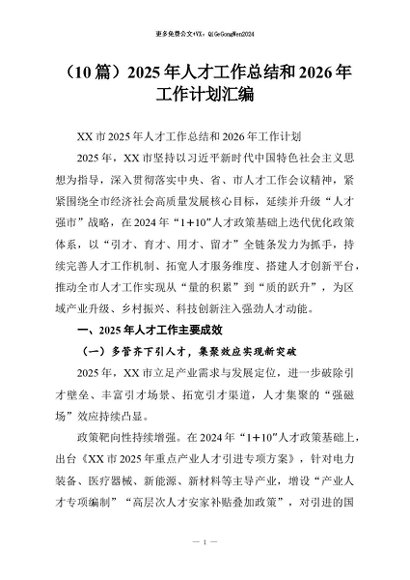 【七哥公文】2025年:(10篇)2025年人才工作总结和2026年工作计划汇编+更多免费公文+VX:QiGeGongWen2024