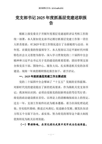 / 【七哥公文】2025年:党支部书记2025年度抓基层党建述职报告+更多免费公文+VX:QiGeGongWen2024