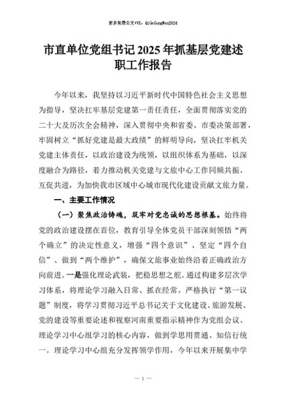 / 【七哥公文】2025年:市直单位党组书记2025年抓基层党建述职工作报告+更多免费公文+VX:QiGeGongWen2024