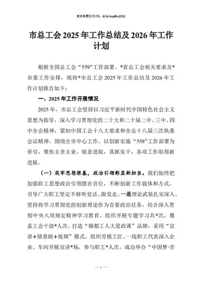 / 【七哥公文】2025年:市总工会2025年工作总结及2026年工作计划+更多免费公文+VX:QiGeGongWen2024