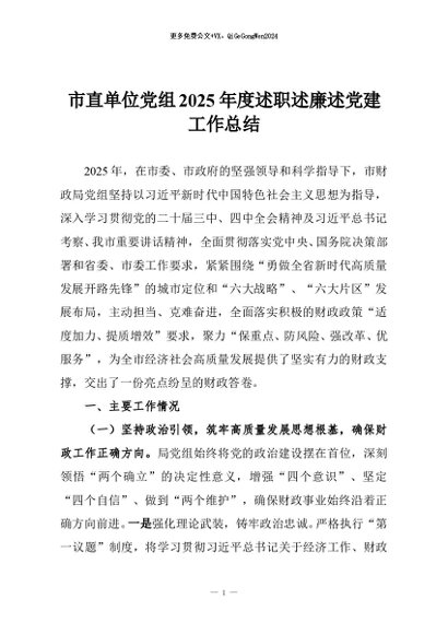 / 【七哥公文】2025年:市直单位党组2025年度述职述廉述党建工作总结+更多免费公文+VX:QiGeGongWen2024