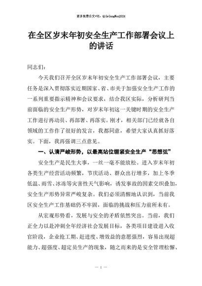 / 【七哥公文】2025年:在全区岁末年初安全生产工作部署会议上的讲话+更多免费公文+VX:QiGeGongWen2024