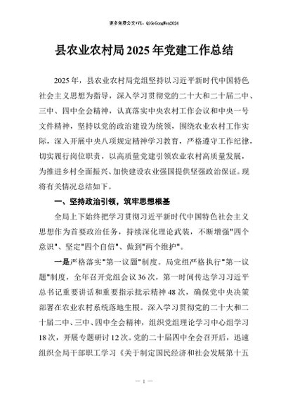 / 【七哥公文】2025年:县农业农村局2025年党建工作总结+更多免费公文+VX:QiGeGongWen2024