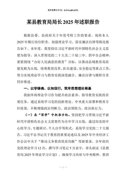 / 【七哥公文】2025年:某县教育局局长2025年述职报告+更多免费公文+VX:QiGeGongWen2024