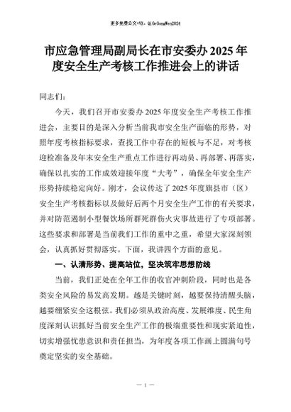 【七哥公文】2025年:市应急管理局副局长在市安委办2025年度安全生产考核工作推进会上的讲话+更多免费公文+VX:QiGeGongWen2024