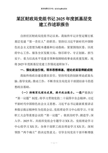 【七哥公文】2025年:某区财政局党组书记2025年度抓基层党建工作述职报告+更多免费公文+VX:QiGeGongWen2024