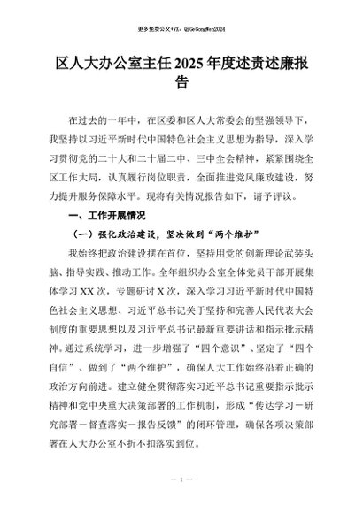 / 【七哥公文】2025年:区人大办公室主任2025年度述责述廉报告+更多免费公文+VX:QiGeGongWen2024
