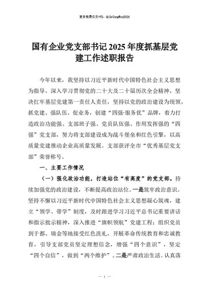 【七哥公文】2025年:国有企业党支部书记2025年度抓基层党建工作述职报告+更多免费公文+VX:QiGeGongWen2024