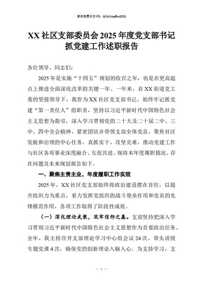 【七哥公文】2025年:XX社区支部委员会2025年度党支部书记抓党建工作述职报告+更多免费公文+VX:QiGeGongWen2024