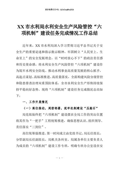 【七哥公文】2025年:XX市水利局水利安全生产风险管控“六项机制”建设任务完成情况工作总结+更多免费公文+VX:QiGeGongWen2024