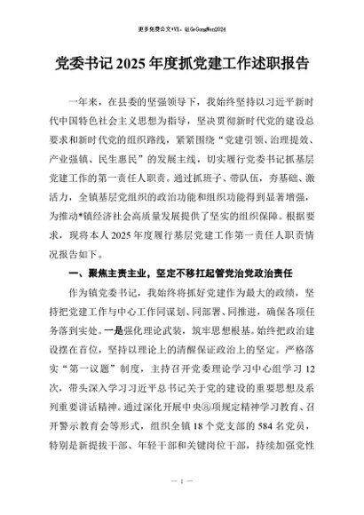 / 【七哥公文】2025年:党委书记2025年度抓党建工作述职报告+更多免费公文+VX:QiGeGongWen2024