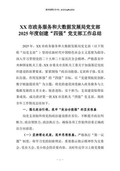 【七哥公文】2025年:XX市政务服务和大数据发展局党支部2025年度创建“四强”党支部工作总结+更多免费公文+VX:QiGeGongWen2024
