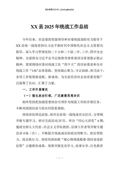 / 【七哥公文】2025年:XX县2025年统战工作总结+更多免费公文+VX:QiGeGongWen2024