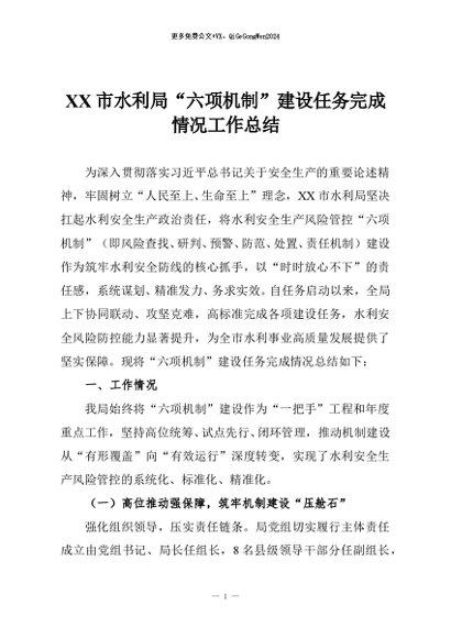 / 【七哥公文】2025年:XX市水利局“六项机制”建设任务完成情况工作总结+更多免费公文+VX:QiGeGongWen2024