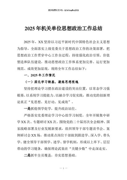 / 【七哥公文】2025年:2025年机关单位思想政治工作总结+更多免费公文+VX:QiGeGongWen2024
