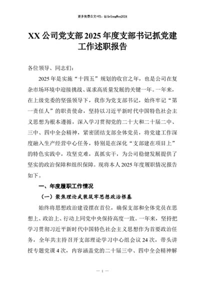 【七哥公文】2025年:XX公司党支部2025年度支部书记抓党建工作述职报告+更多免费公文+VX:QiGeGongWen2024