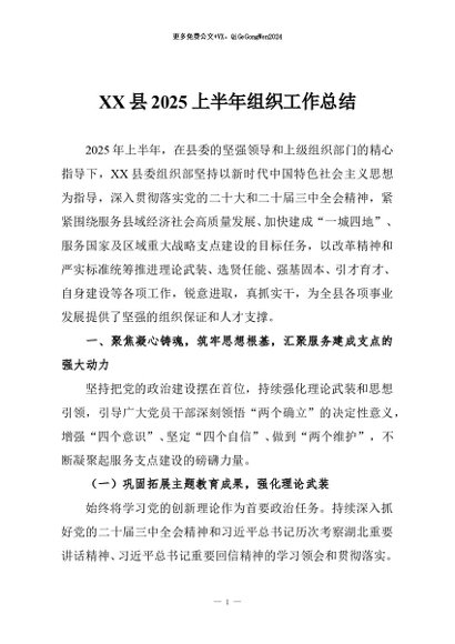 / 【七哥公文】2025年:XX县2025上半年组织工作总结+更多免费公文+VX:QiGeGongWen2024