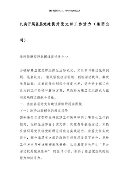【七哥公文】2025年:扎实开展基层党建 提升党支部工作活力(集团公司)_副本+更多免费公文+VX:QiGeGongWen2024