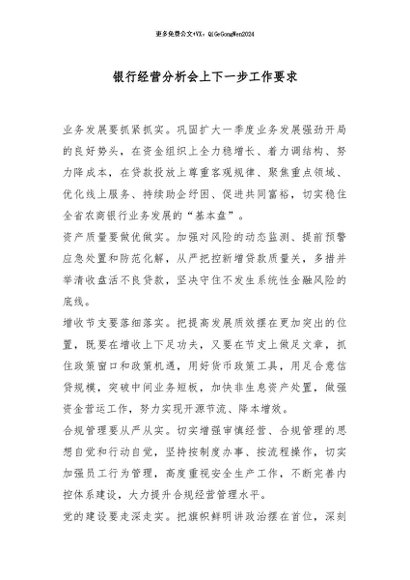 / 【七哥公文】2025年:银行经营分析会上下一步工作要求_副本+更多免费公文+VX:QiGeGongWen2024