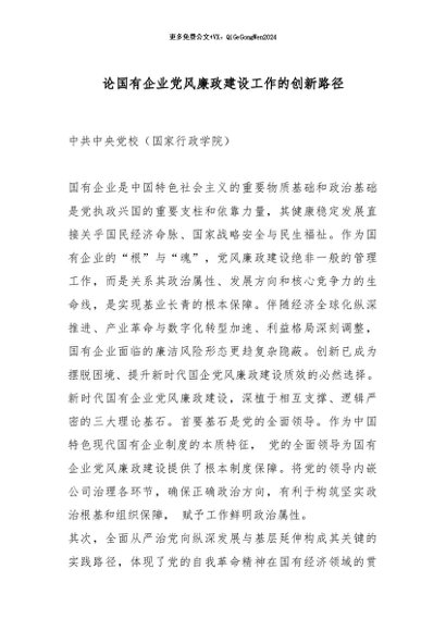 / 【七哥公文】2025年:论国有企业党风廉政建设工作的创新路径_副本+更多免费公文+VX:QiGeGongWen2024