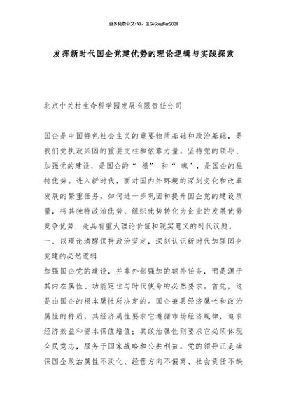 【七哥公文】2025年:发挥新时代国企党建优势的理论逻辑与实践探索_副本+更多免费公文+VX:QiGeGongWen2024