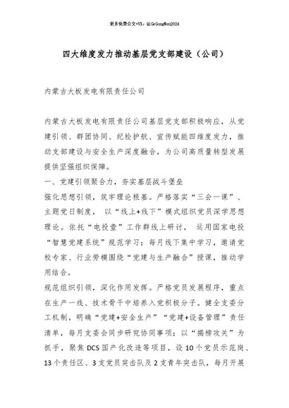 【七哥公文】2025年:四大维度发力推动基层党支部建设(公司)_副本+更多免费公文+VX:QiGeGongWen2024