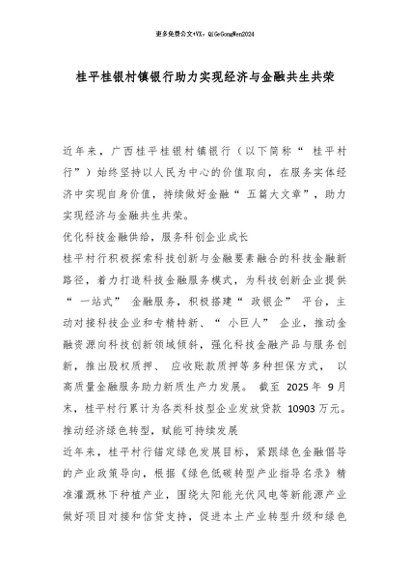 【七哥公文】2025年:桂平桂银村镇银行助力实现经济与金融共生共荣_副本+更多免费公文+VX:QiGeGongWen2024