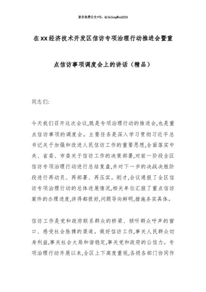 【七哥公文】2025年:在XX经济技术开发区信访专项治理行动推进会暨重点信访事项调度会上的讲话(精品)_副本+更多免费公文+VX:QiGeGongWen2024