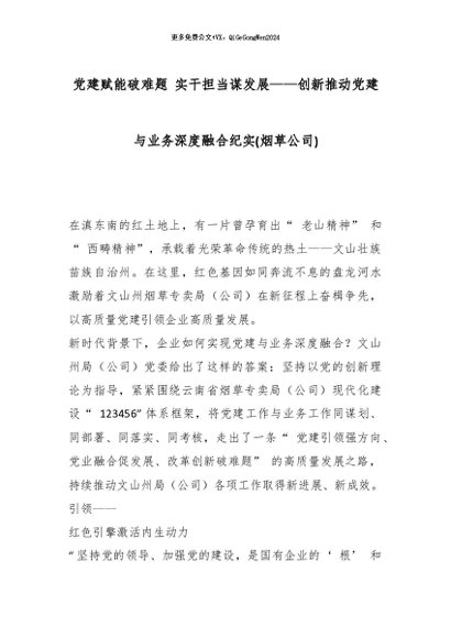 【七哥公文】2025年:党建赋能破难题 实干担当谋发展——创新推动党建与业务深度融合纪实(烟草公司)_副本+更多免费公文+VX:QiGeGongWen2024