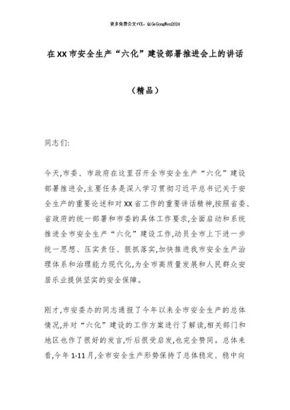 【七哥公文】2025年:在XX市安全生产“六化”建设部署推进会上的讲话(精品)_副本+更多免费公文+VX:QiGeGongWen2024