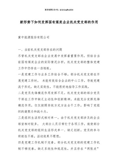 【七哥公文】2025年:新形势下如何发挥国有煤炭企业机关党支部的作用_副本+更多免费公文+VX:QiGeGongWen2024