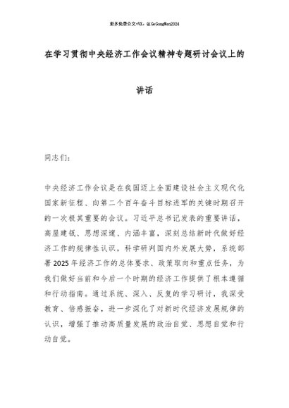 【七哥公文】2025年:在学习贯彻中央经济工作会议精神专题研讨会议上的讲话_副本+更多免费公文+VX:QiGeGongWen2024