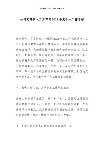【七哥公文】2025年:公司党群和人力资源部2025年度个人工作总结_副本+更多免费公文+VX:QiGeGongWen2024