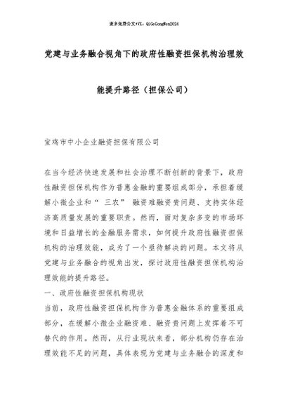 【七哥公文】2025年:党建与业务融合视角下的政府性融资担保机构治理效能提升路径(担保公司)_副本+更多免费公文+VX:QiGeGongWen2024