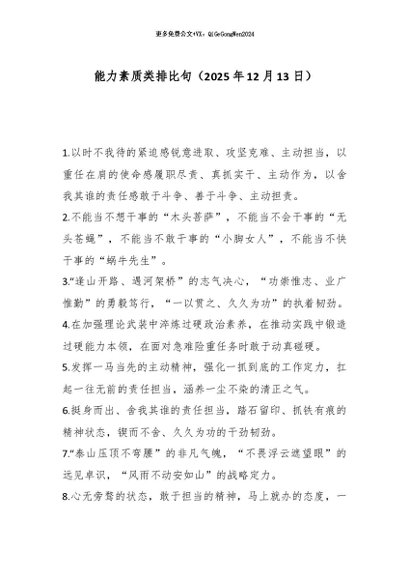 【七哥公文】2025年:能力素质类排比句(2025年12月13日)_副本+更多免费公文+VX:QiGeGongWen2024