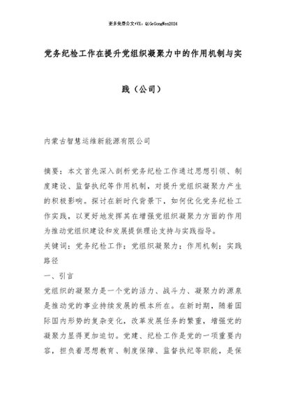 【七哥公文】2025年:党务纪检工作在提升党组织凝聚力中的作用机制与实践(公司)_副本+更多免费公文+VX:QiGeGongWen2024