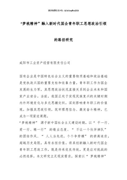 【七哥公文】2025年:“梦桃精神”融入新时代国企青年职工思想政治引领的路径研究_副本+更多免费公文+VX:QiGeGongWen2024