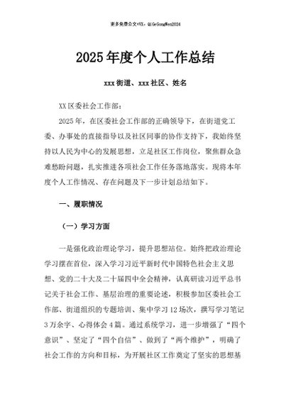 / 【七哥公文】2025年:2025年度个人工作总结(社区)+更多免费公文+VX:QiGeGongWen2024