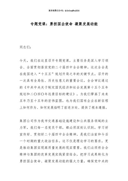/ 【七哥公文】2025年:专题党课:勇担国企使命 凝聚发展动能_副本+更多免费公文+VX:QiGeGongWen2024