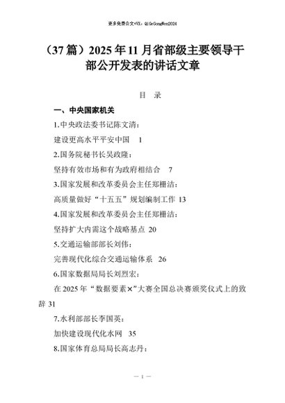 【七哥公文】2025年:(37篇)2025年11月省部级主要领导干部公开发表的讲话文章+更多免费公文+VX:QiGeGongWen2024