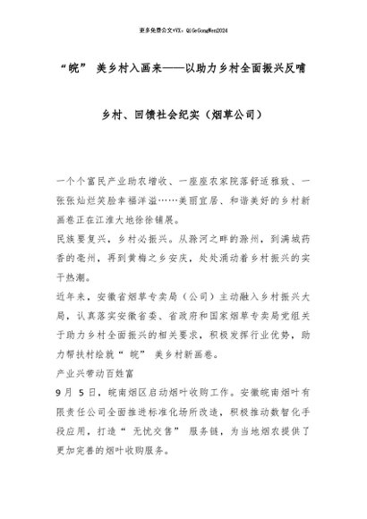 【七哥公文】2025年:“ 皖” 美乡村入画来——以助力乡村全面振兴反哺乡村、回馈社会纪实(烟草公司)_副本+更多免费公文+VX:QiGeGongWen2024