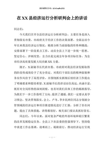 / 【七哥公文】2025年:在XX县经济运行分析研判会上的讲话+更多免费公文+VX:QiGeGongWen2024
