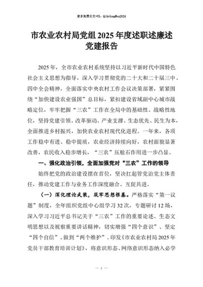 / 【七哥公文】2025年:市农业农村局党组2025年度述职述廉述党建报告+更多免费公文+VX:QiGeGongWen2024
