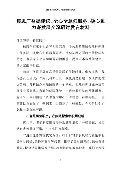 【七哥公文】2025年:集思广益提建议、全心全意强服务、凝心聚力谋发展交流研讨发言材料+更多免费公文+VX:QiGeGongWen2024