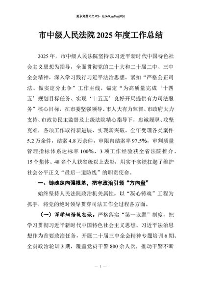 / 【七哥公文】2025年:市中级人民法院2025年度工作总结+更多免费公文+VX:QiGeGongWen2024