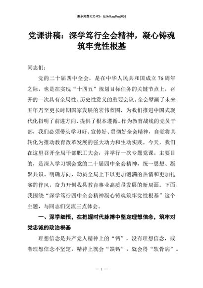 / 【七哥公文】2025年:党课讲稿:深学笃行全会精神,凝心铸魂筑牢党性根基+更多免费公文+VX:QiGeGongWen2024